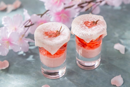 フレッシュなストロベリーゼリーが中に入った、香り高い桜のムース。