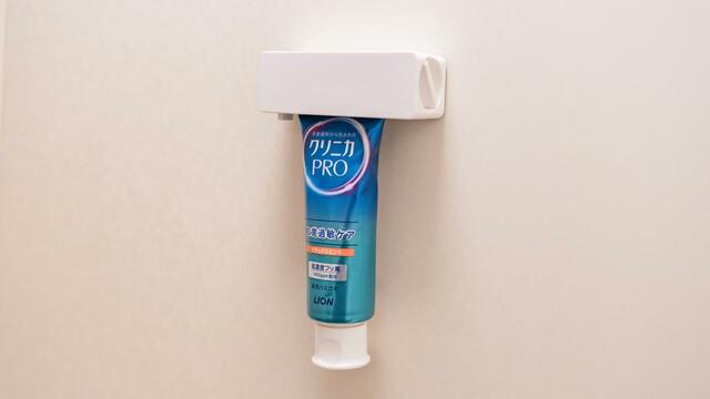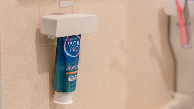 山崎実業の「歯磨き粉チューブホルダー」で浮かせる収納