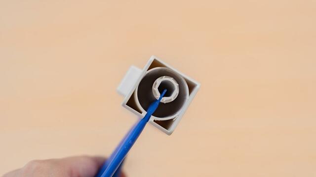 このときに、チューブを平行にしてセットするのがコツ。斜めのままだとハンドルをまわしたときにズレてしまうので、注意が必要です。