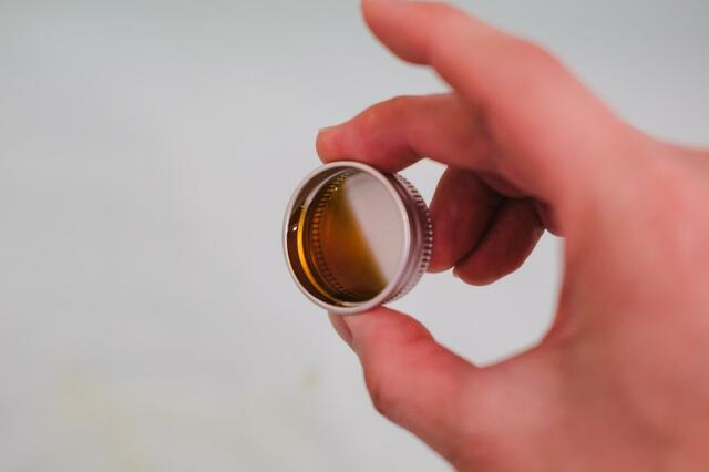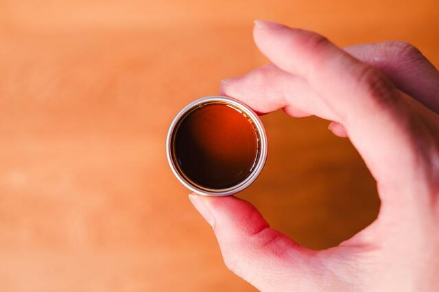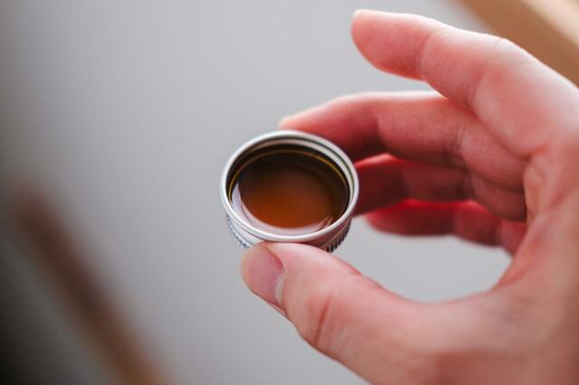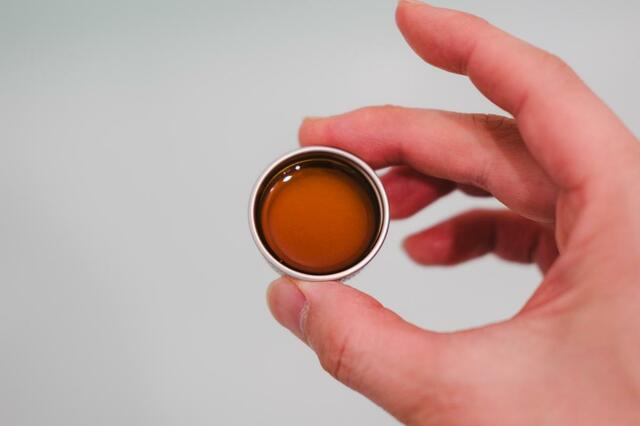 濃縮されたカミツレエキスは、まるで濃い紅茶のような色。