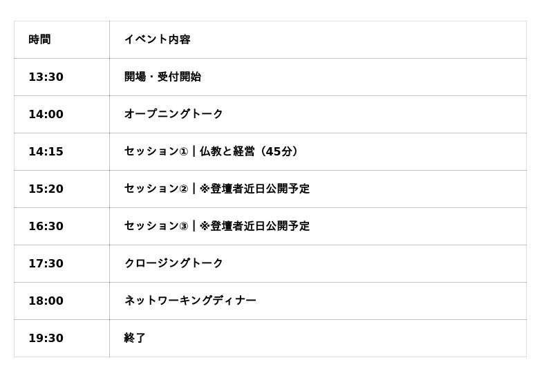 ローカル/ファンダム/インダストリアルという3つのテーマごと、思想、歴史、技術と多岐にわたって知見を持つ仏教僧・起業家らが登壇します。