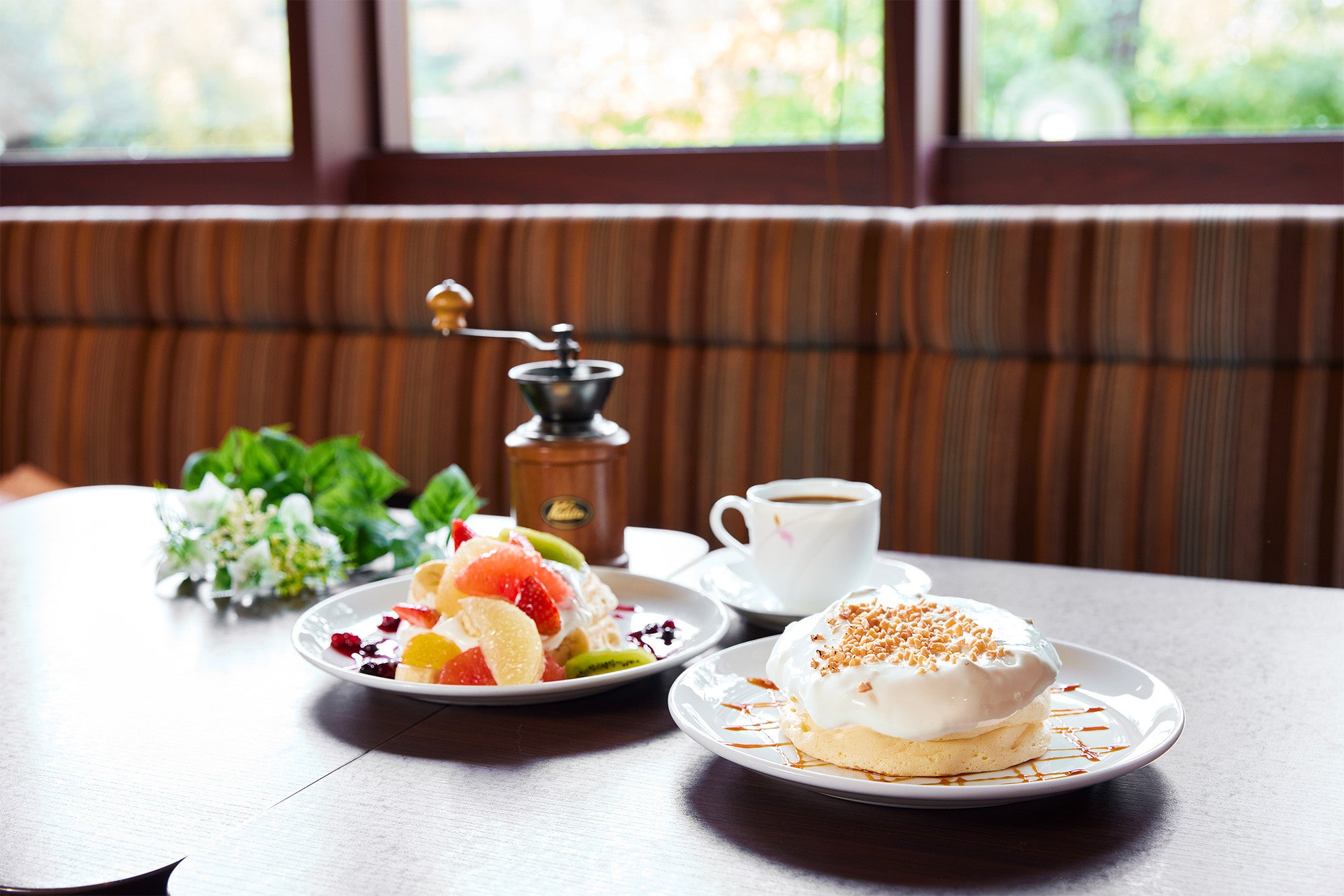 人気の「特製クリームのリコッタパンケーキ」と「フルーツパンケーキ」。