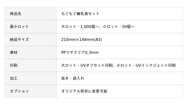 『もぐもぐ離乳食セット』は、お客様のイメージにあわせてオリジナルデザインで作製します。
