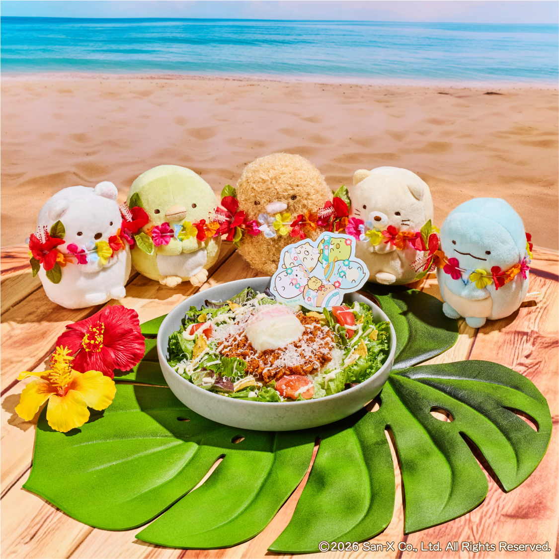今回のコラボレーションでは、「しろくま・ぺんぎん?・とんかつ・ねこ・とかげ」といったおなじみのすみっコたちが、リゾート風衣装で皆さまをお迎えします。 ロコフードやトロピカルなスイーツを囲みながら、すみっコたちと一緒にのんびりお過ごしください。■フード