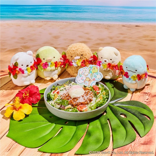 “Play fashion!”をミッションに掲げるアンドエスティHDグループで、飲食事業や公園再生事業などを展開する株式会社ゼットン(本社:東京都渋谷区、代表取締役社長:菊地大輔)が運営する「アロハテーブル」は、『すみっコたちと過ごす、ハワイアンバケーション!』をテーマにした、「すみっコぐらし」とのコラボレーションメニューを、2026年3月4日(水)~5月10日(日)の期間限定で提供します。リゾート風衣装におめかししたすみっコたちと一緒に、ハワイ気分に包まれる癒やしのひとときをお楽しみください。