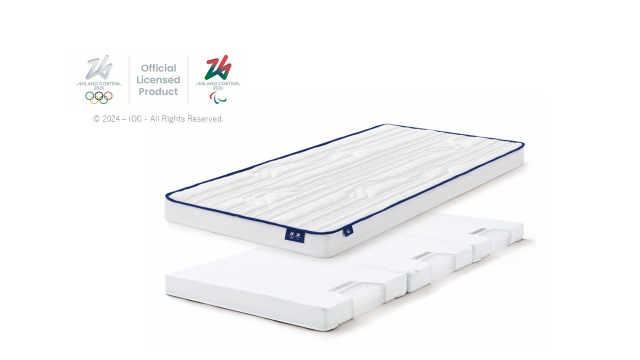 ミラノ・コルティナ2026公式オリンピックライセンス商品のベッドマットレス、かけ布団、枕を提供。現役アスリートの睡眠を支える限定モデルで、学生たちの睡眠環境を整えます。ベッドマットレスは表裏で硬さが異なる3分割構造のブロックを入れ替えることで、カスタマイズが可能。一人ひとりの体形に合わせて、理想的な寝姿勢を実現します。