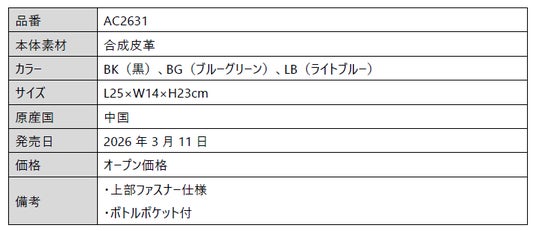 ラウンドトートバッグ(AC2631)は、ラウンドでの使いやすさを追求し、バッグ内部には保冷素材のボトルポケットや仕分けできるポケットがあり小物収納に便利です。また、上部はファスナー仕様とし、ラウンド中のゴルフカートでの中身の飛び出しを防ぎます。
