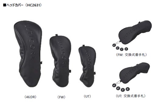 ヘッドカバー(HC2631)は、キャディバッグ内のクラブ同士がかさばりにくいように、裾部分をカーブ形状にしています。展開カラーは黒1色です。