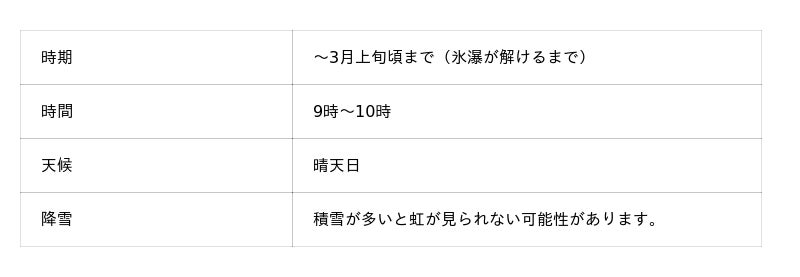 《 氷瀑&虹 出現条件 》