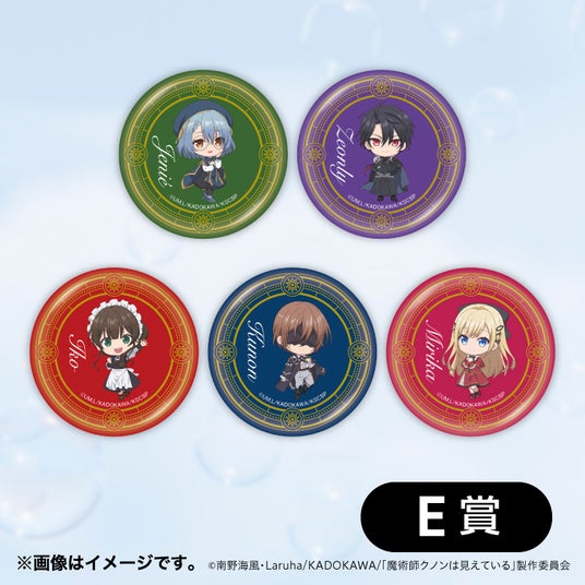 【内容】キャラクターをデザインした煌めくメタリック缶バッジです。「クノン」「ミリカ」「イコ」「ジェニエ」「ゼオンリー」の5種から選べます。