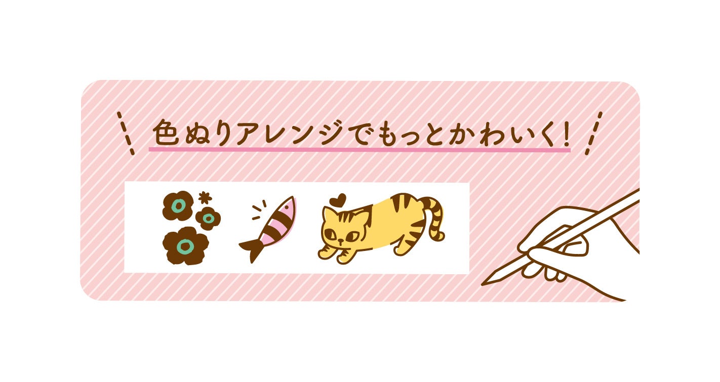 スタンプを押した後に色をぬることで、さらにオリジナルのデコレーションを楽しむことができます。