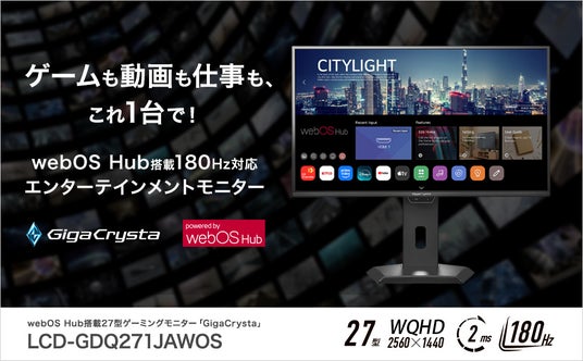 webOS Hub搭載27型ゲーミングモニター「GigaCrysta」LCD-GDQ271JAWOS