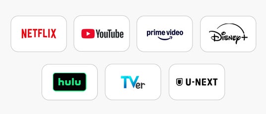 PC不要でお馴染みのNetflix、YouTube、Prime Video、Disney+、Hulu、TVer、U-NEXTなど、さまざまなコンテンツをお楽しみいただけます。
