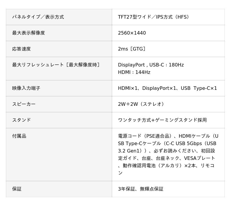 ■ゲーミングモニターGigaCrysta「LCD-GDQ271JAWOS」5つの特長