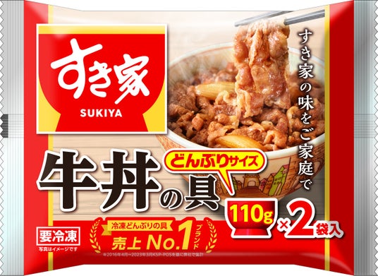 すき家の牛丼をご家庭で楽しめる「すき家 牛丼の具」シリーズに、食べ応えのあるどんぶりサイズ110gの2袋入りが新登場。
