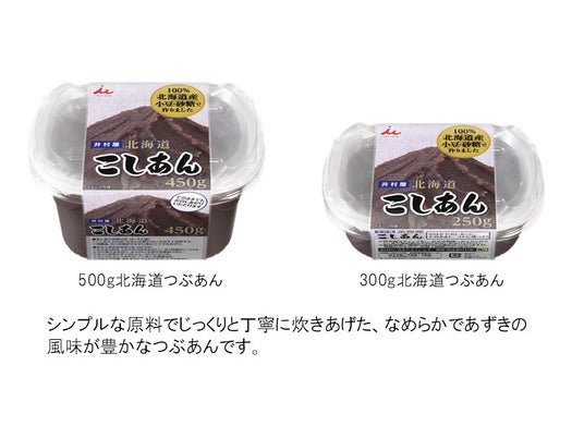 (1)こだわりの原料を使用したこしあん白あんをベースに北海道産の加糖練乳とバター、生クリームを使用し、ミルクのコクと白あんの風味を兼ね備えた新フレーバーのカップ入りこしあんです。コクがありながらもすっきりとした甘さとなっており、パンとの相性が良い味に仕上げました。