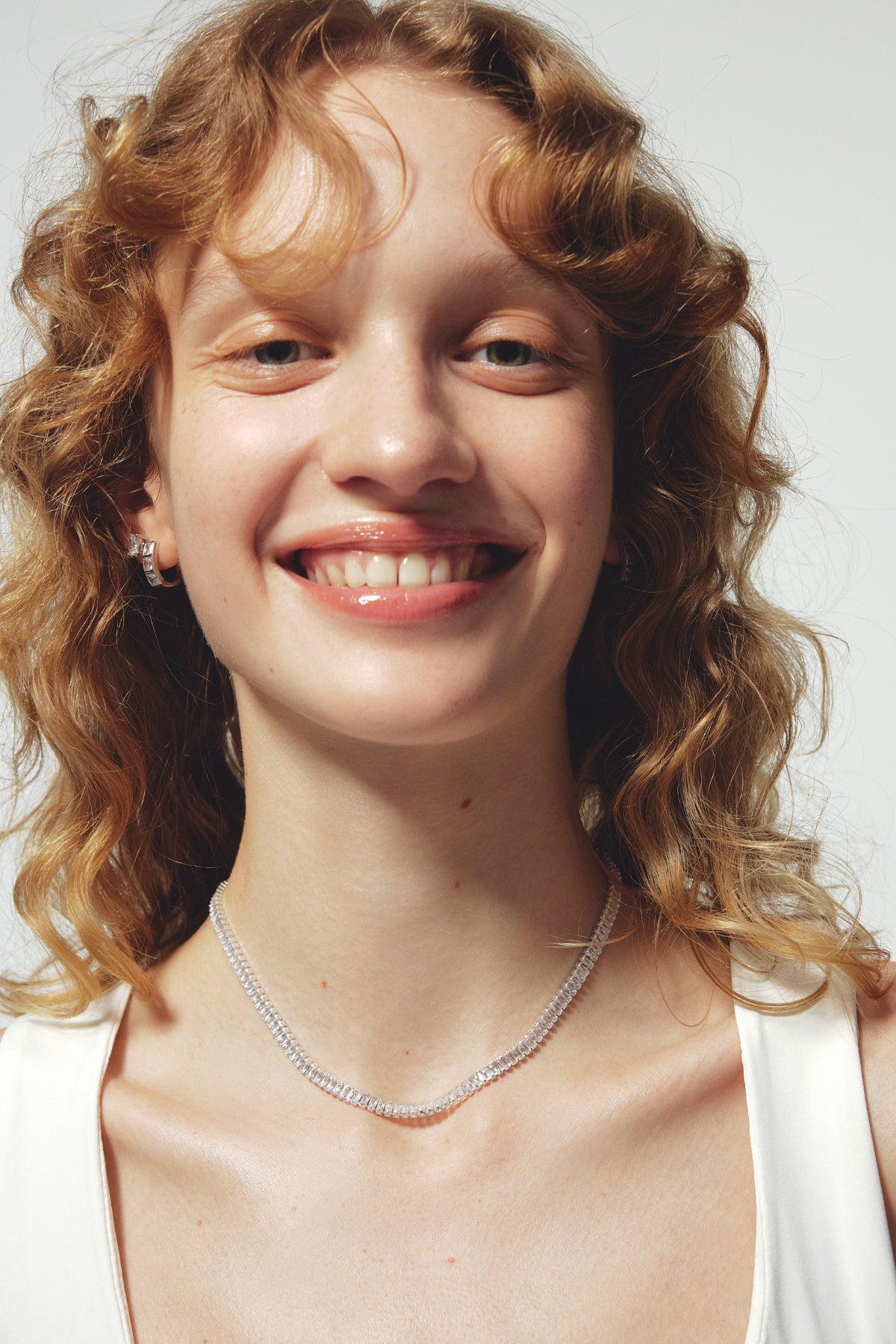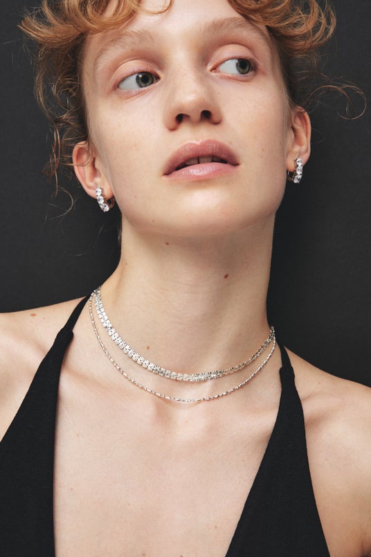 一定のリズムで光を刻み、デコルテに洗練をもたらすネックレス。
