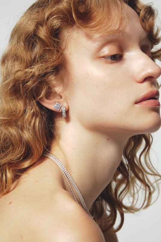 研ぎ澄まされた光を放ち、表情を印象づけるピアス。