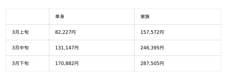 また、特に引越し料金が値上がりしやすい3月のタイミング別の料金相場を見てみると、中旬以降で大幅に値上がりしていることがわかります。