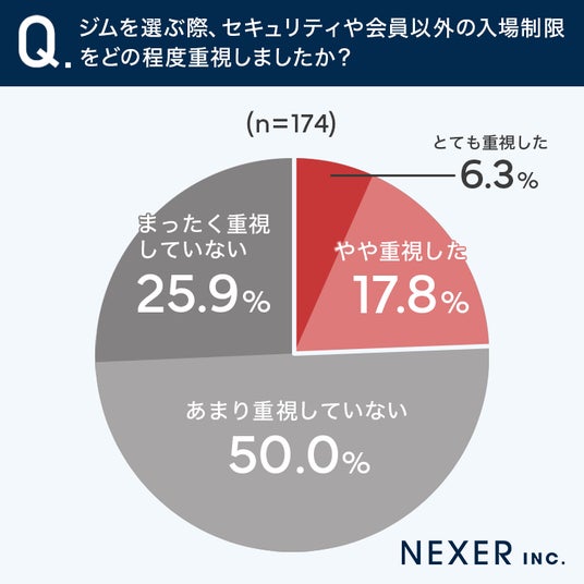 続いて、ジムを選ぶ際にセキュリティや会員以外の入場制限をどの程度重視したか聞いてみました。