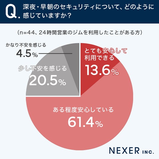 さらに、24時間営業のジムを利用したことがある方に、深夜や早朝のセキュリティについてどう感じているかも調査しました。