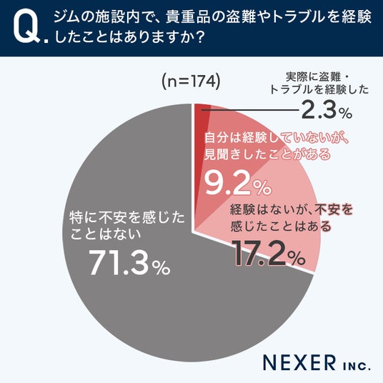 今回の調査では、ジム利用者の多くがセキュリティをあまり重視せずに施設を選んでいる一方で、約3割の方が盗難やトラブルへの不安を抱えていることがわかりました。