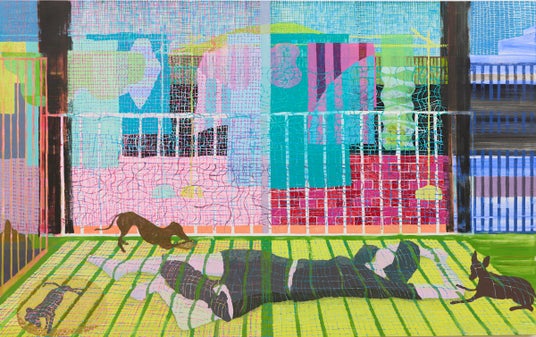 図版4. 伊藤晴香(造形学部油絵学科油絵専攻)《犬の家》キャンバス、油絵具 H1620×W2590mm