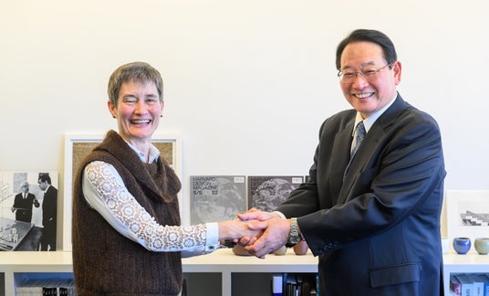 GSD学部長 ホワイティング教授とYKK AP会長 堀 秀充による調印式※2025年12月にYKK AP関係者が訪問した際にGSDによって撮影