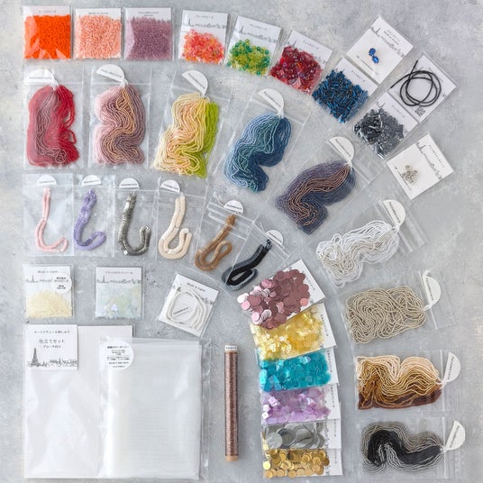 めずらしいスパンコールやビーズが揃う、刺しゅう材料専門の〈小さな手芸屋さん〉。オートクチュールで用いられるフランス製スパンコール、色鮮やかな糸通しビーズ、初心者から上級者まで楽しめる刺しゅうキットを幅広くご紹介します。こだわりの手仕事、作品を身にまとう喜び、贈る幸せ--自ら作る豊かさを、厳選素材とキットでご体験ください。〈小さな手芸屋さん〉は実店舗を持たないため、日本橋三越本店の本イベントが実際に手に取って選べる貴重な機会です。