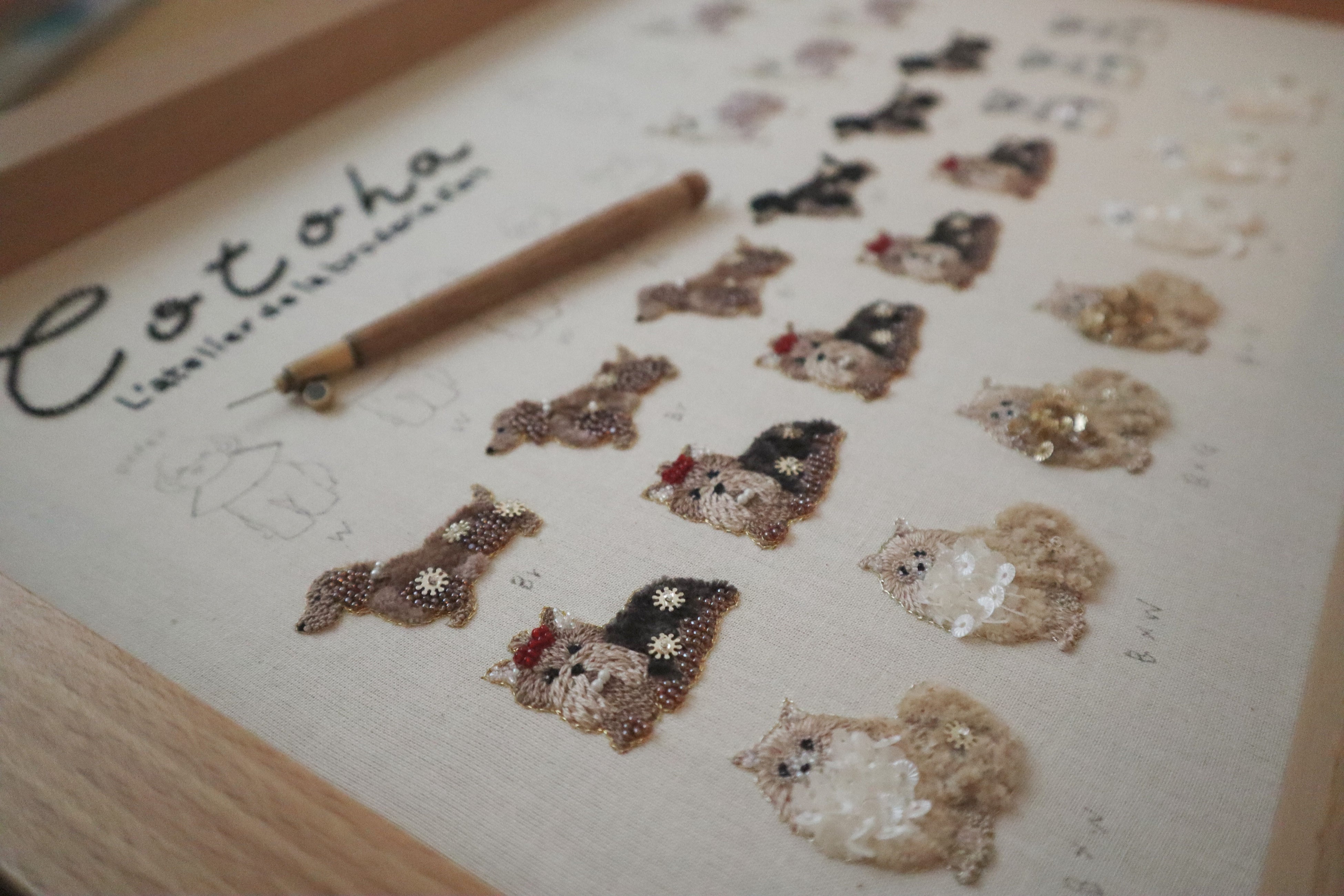 動物刺しゅうのアクセサリーを手がける〈Cotoha(コトハ)〉が、三越手芸に登場。フランスのオートクチュール刺しゅう技法「リュネビル」に糸刺しゅうのステッチを組み合わせ、刺しゅう糸・モール糸・ビーズ・スパンコールなど多様な素材で、煌めきと温かさを併せ持つモチーフを表現します。会期中は、人気の定番から新作まで幅広く楽しめる刺しゅうキットに加え、どんなコーディネイトにもそっと寄り添う動物刺しゅうブローチを発売。オートクチュール由来の精緻な手仕事が息づく〈Cotoha〉ならではの世界観をご紹介します。