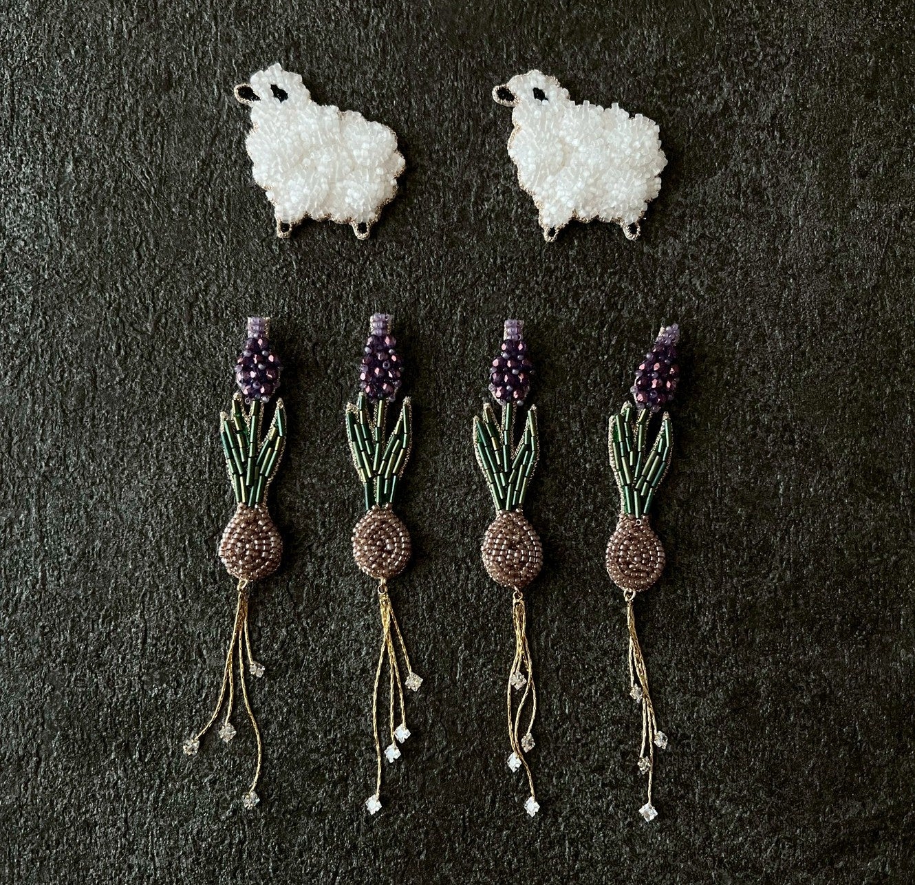 繊細さと可憐な雰囲気を大切に、一つひとつ心を込めて制作する〈La mienne(ラ ミエンヌ)〉。オートクチュール刺繍技法のひとつ、リュネビル法を中心に、アンティークビーズや現代ビーズ、フランス製スパンコール、ビジューや天然石など多彩な素材を組み合わせた刺繍アクセサリーを展開します。フランスから取り寄せた希少なアンティークマイクロビーズやスパンコール、ビジューと、現行品のスパンコールやガラスビーズ、天然パール、天然石を作品ごとに選び抜き、唯一無二の美しさを宿したアクセサリーをご紹介します。