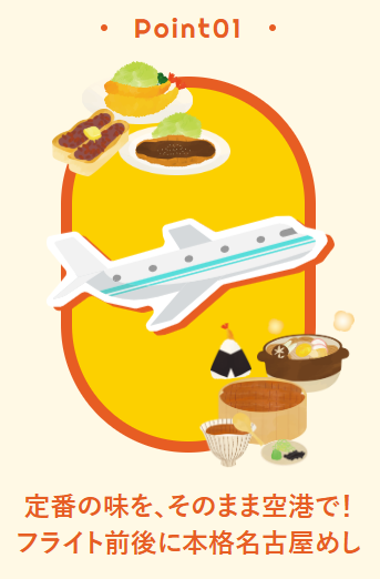 また、セントレアに到着する際にも、名古屋市内に向かうことなく、空港内で名古屋めしを満喫することができます。