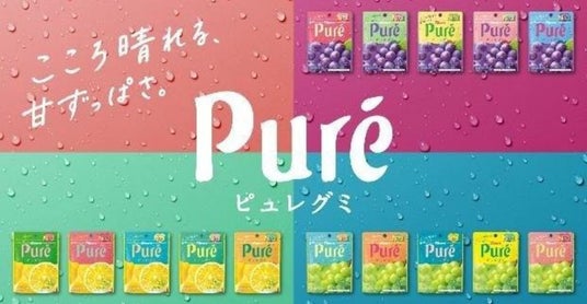 「ピュレグミ」は、2002年の発売以来、幅広い世代の方からご支持いただいているカンロの人気商品です。フルーツのおいしさを引き出す“すっぱいパウダー”と独自の“果肉食感”により、噛むほどにフルーティーな甘ずっぱいおいしさが広がり、食べた瞬間こころが晴れるように、ちょっとハート(気持ち)があがるハート型のグミです。