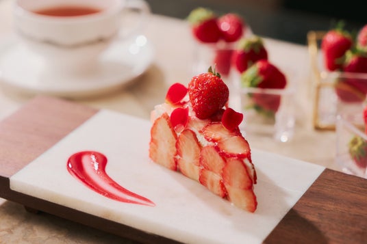 ウェルカムパーティーをお楽しみいただいた後は、心地よい自然光が差し込み緑豊かなガーデンを望む「La Jyho Terrace」にて、繊細にスライスされたいちごの断面が美しいウェルカムデセール「こだわりいちごショート」をご用意。その後は、ブランドいちご5種をはじめ、ホテルメイドの華やかないちごスイーツや、サラダ、スープ、パスタなどのセイボリーをワゴン&プラッターサービスでテーブルまでお届け。ドリンクもお席にてオーダーいただけます。通常のビュッフェスタイルとは異なり、最初から最後まで席を立つことなく、お連れ様との会話や、お好みのスイーツやセイボリーをじっくり味わう至福の時間に浸りながら、120分間の優雅なひとときをお過ごしいただけます。