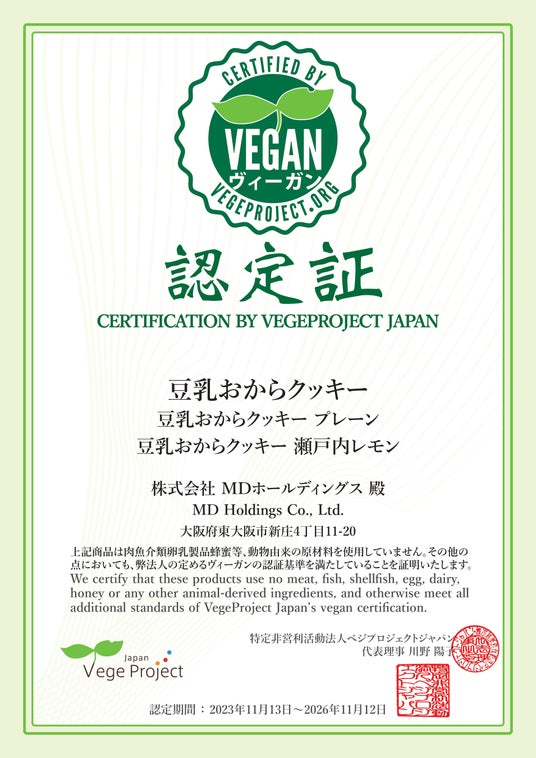 株式会社MDホールディングス(本社:大阪府東大阪市)は、京都の豆腐屋「京とうふ藤野」とのコラボレーションにより共同開発した『豆乳おからクッキー』シリーズの新たなラインアップとして、爽やかな瀬戸内レモンが香る『豆乳おからクッキー 瀬戸内レモン』を、2026年3月2日(月)より、全国で発売いたします。