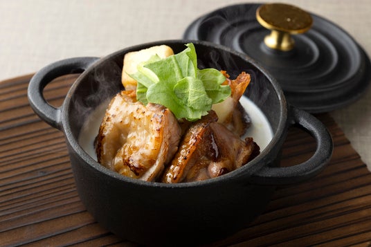 奈良県産 大和肉鶏とカチョカバロ -飛鳥鍋をイメージして-