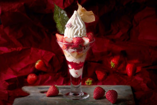 左:『いちごと桜のパフェ ~Strawberry JuJu~』 右:『いちごのパブロヴァ ~Wedding Dress~』