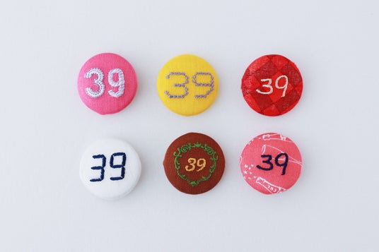 くるみボタンには、感謝の気持ちを込めた数字「39(サンキュー)」や「Merci」の刺繍をあしらいました。ハンカチーフコンシェルジュが、ハンカチーフのデザインを最大限に活かしながら、それぞれに合う刺繍フォントを組み合わせ、手仕事で丁寧に仕立てたオリジナルアイテムです。これまで支えてくださった皆さまへの感謝をかたちにした、ささやかな記念品です。