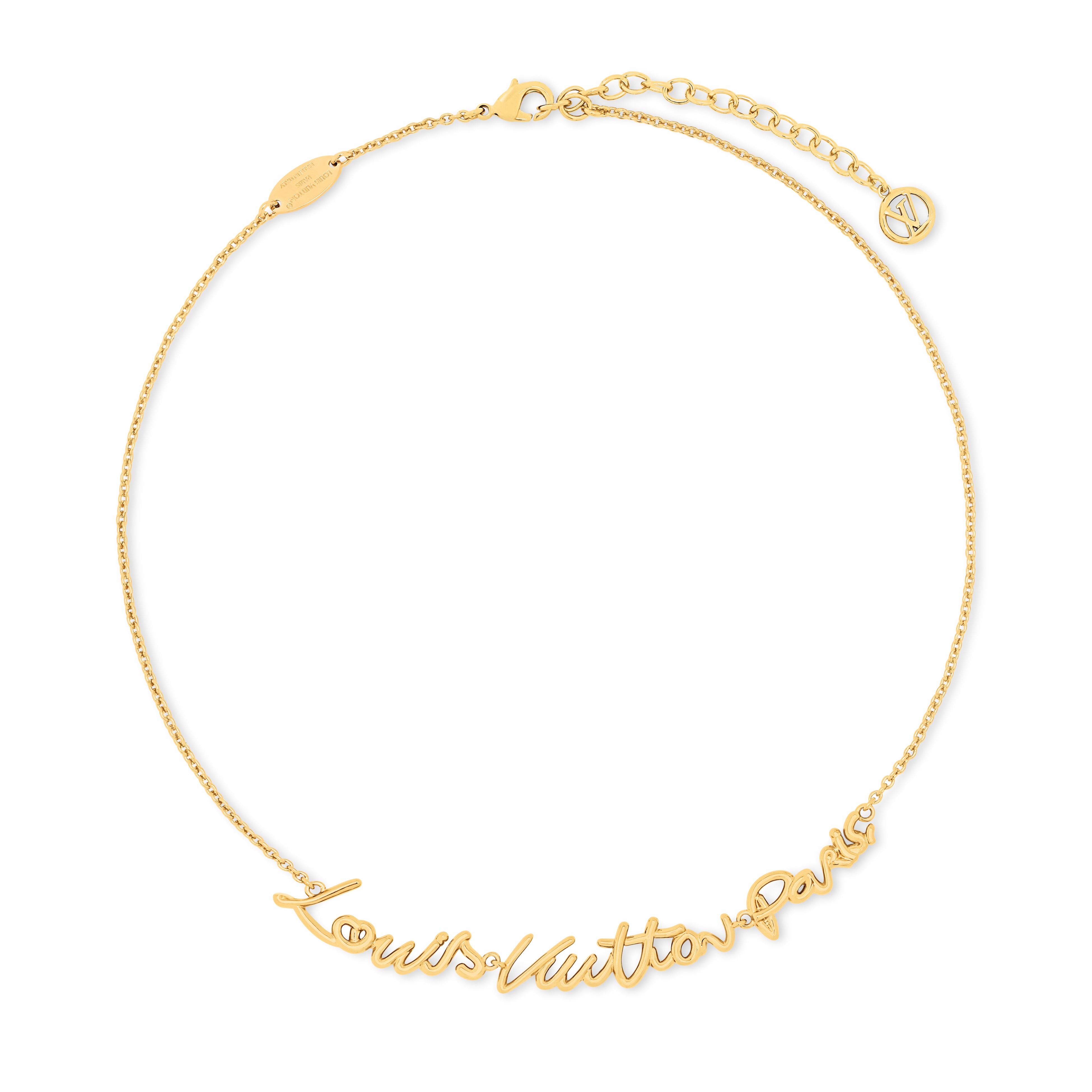 精緻なデザインが魅力の「ネックレス・LV スクリプト」。繊細なゴールドカラーのチェーンに吊り下げられたセンターピースには、流れるような手書き風の「Louis Vuitton Paris」シグネチャーがあしらわれています。この上なくフェミニンでプレシャスなこのネックレスは、あらゆる装いにさりげない幻想的なアクセントを添えます。