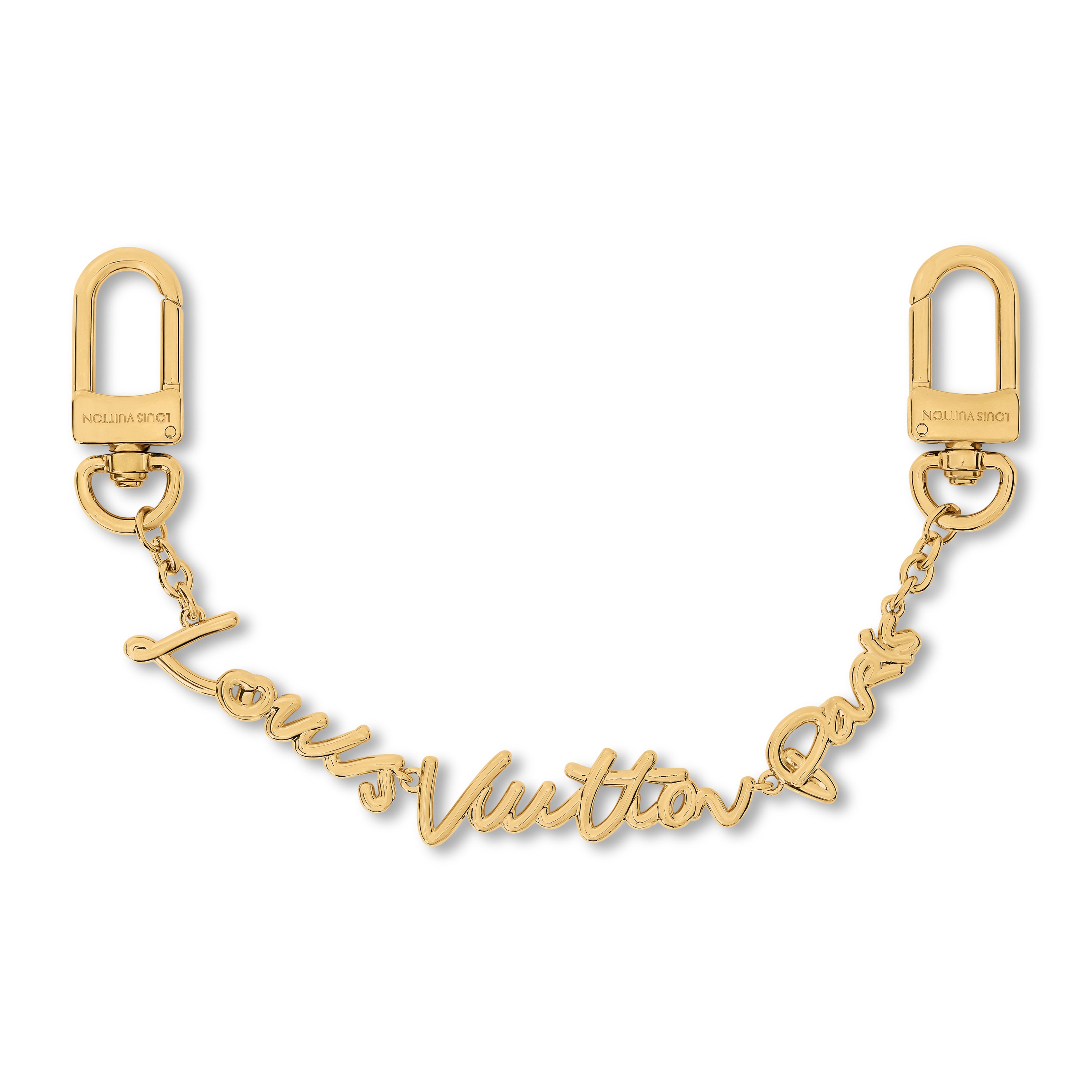 トレンド感溢れる洗練されたデザインの「バッグチャーム・LV スクリプト チェーン」。普段の装いにもフォーマルなスタイルにも洗練されたアクセントを添える、メゾンならではのシグネチャーが光るアイテムです。光沢感のあるゴールドカラーのチェーンが2つのスナップフックの間に吊り下げられ、流れるような手書き風で「Louis Vuitton Paris」の文字を施しているデザイン。スタイリッシュかつエレガントな雰囲気を放つ、個性を際立たせるアイキャッチーなチャームです。