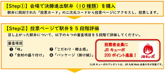 今年度は、九州新幹線開業・JR 博多シティ開業15 周年を記念し博多阪急で開催される「全国有名駅弁とうまいもの大会」特設ブースにて『決勝大会』を実施いたします。会場で対象の駅弁10 種類をご購入・召し上がっていただいたうえ、投票にご参加いただけます。