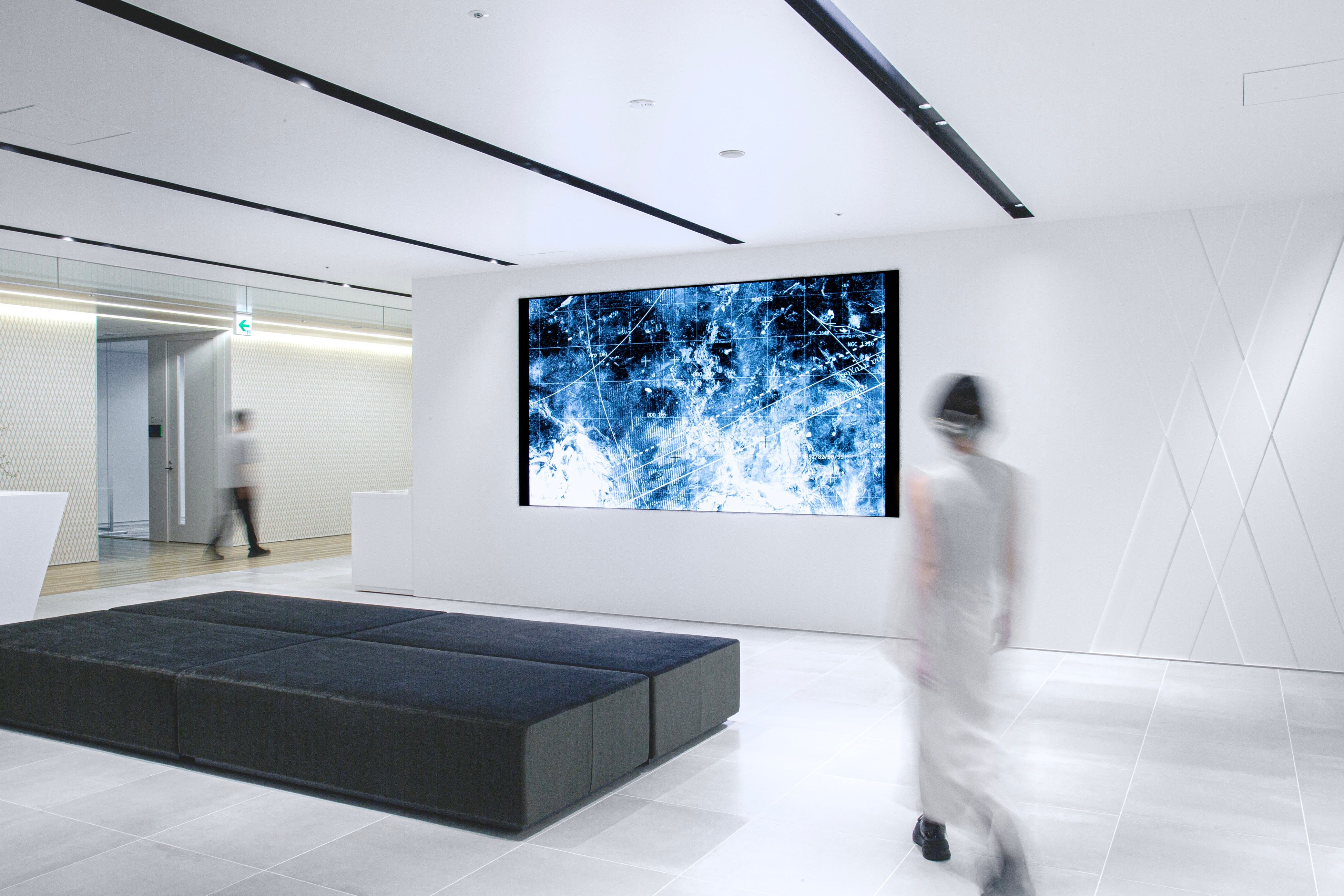 デンソー東京支社のオフィスエントランスのための本作は、奥村が同社の取り組みへのリサーチを重ね、自身の課題意識と重ね合わせて制作されました。企業と表現者の、異なる領域が交差することで立ち上がる新たな視点をご覧ください。