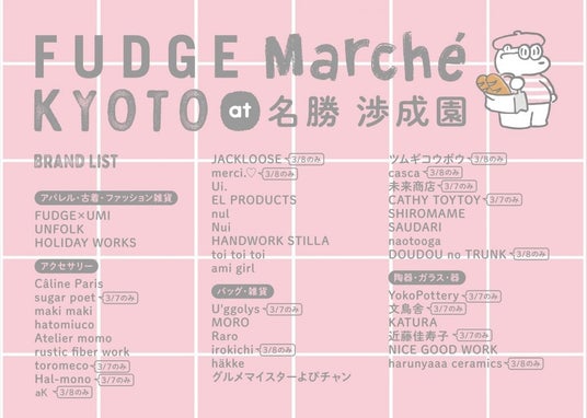 関連記事:『FUDGE Marche KYOTO』バッグや雑貨など完売必至のアイテムが勢ぞろい|出展ブランドリスト vol.2