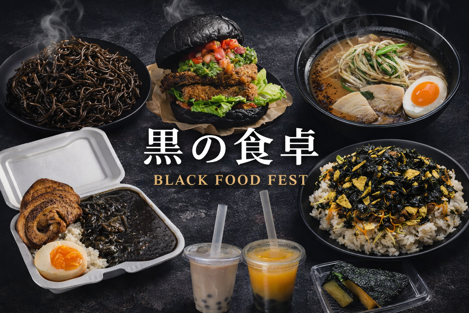 フードトラックには漆黒を基調とした食材が並びます!各店舗試行錯誤しながらオリジナルメニューが完成しました。見る・香る・味わうすべてで当日のFOODをお楽しみください!!