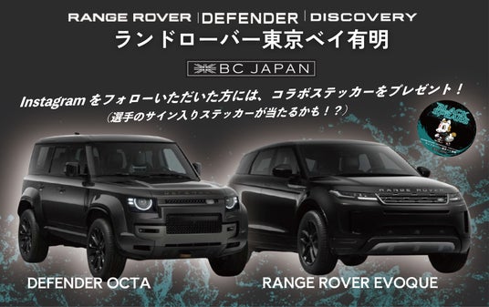 マッチデーパートナーBC Japanのブースでは、DEFENDER OCTAとRANGE ROVER EVOQUEの2台を展示いたします!