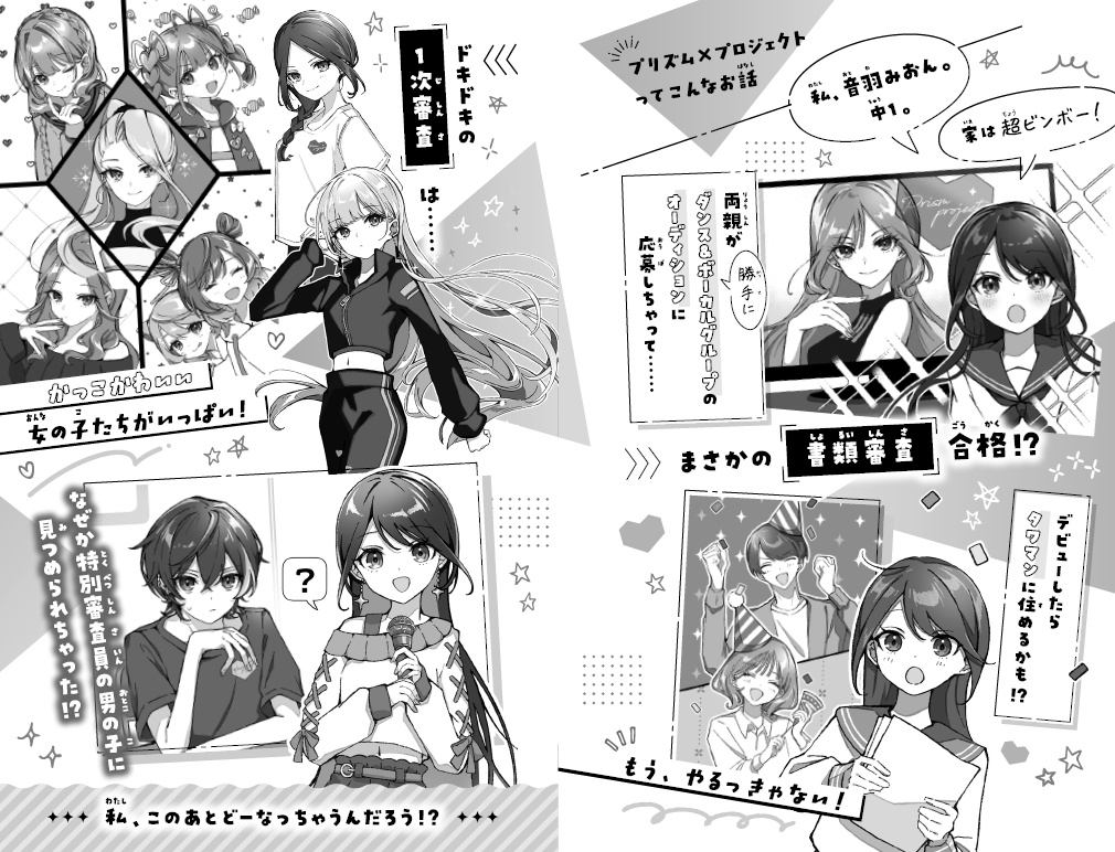 寮生活でのレッスン、グループに分かれて行うパフォーマンス審査など、昨今人気を博しているサバイバルオーディション番組さながらのドキドキする展開を小説で楽しめます。