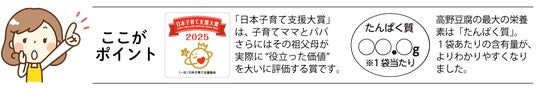 旭松食品株式会社(本社:大阪市、本店:長野県飯田市 社長:木下博隆)は、『新あさひ粉豆腐』および 『新あさひ豆腐 うす切り』が一般社団法人 日本子育て支援協会「日本子育て支援大賞2025」を受賞したことを記念し、パッケージをリニューアルいたしました。 2026年3月2日(月)より順次、新デザインで全国に出荷してまいります。