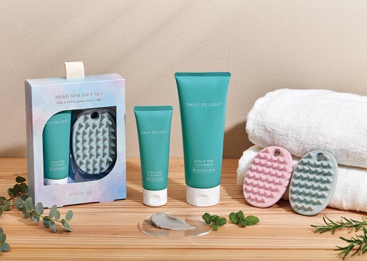 ヘッドスパのような心地よさがセルフケアで叶う『デイリーディライト ビューティー』のヘアケアラインアップがますます充実。1本で頭皮ケア・洗髪・トリートメントできる「ヘッドクレンズ」に持ち運びにも便利な約3回分のトライアルサイズ、39の点と面が心地よいと大好評の「スカルプブラシ」には定番のベーシックに加え、やさしい使い心地のソフトタイプが新発売。すぐにヘッドスパを体感できる「ヘッドスパセット」も仲間入りして、すこやかな頭皮と髪をはぐくむアイテムが揃います。
