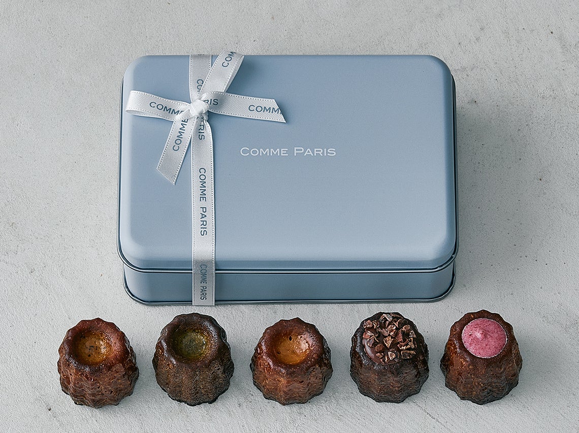 プレーンや人気のショコラ、いちごカヌレなどを味わえる1番人気の詰め合わせ。5種類全てのカヌレを詰め合わせた宝石箱のようなセットです。。