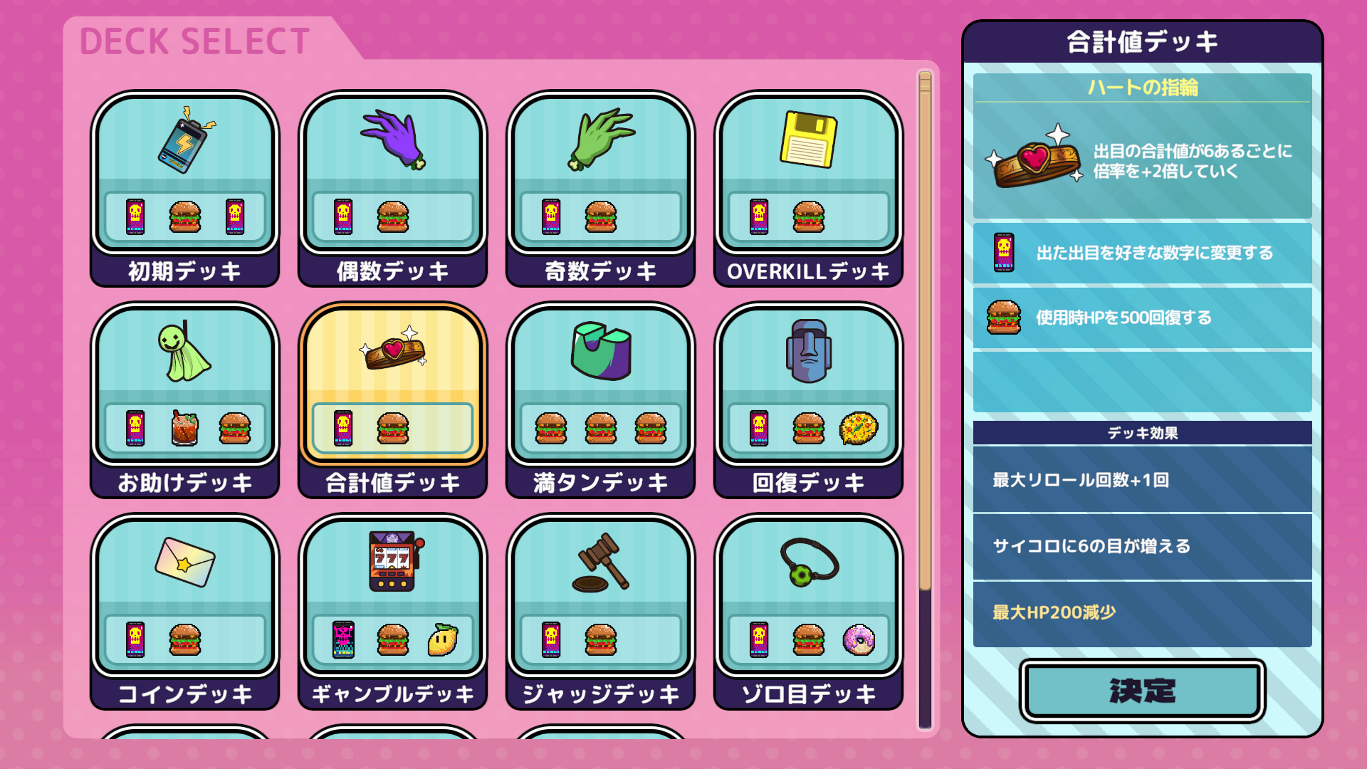 プレイヤーを支えるアイテムやおまもりが拡充され、初期に選べるデッキの種類も追加しました。